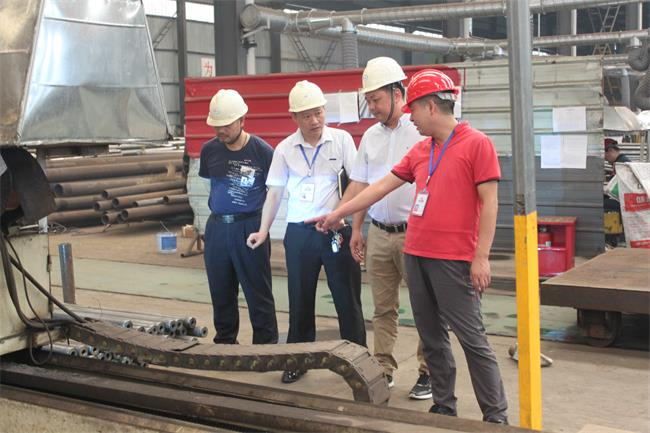 2018年7月25日,今天中南鋼構客戶冒著高達40度高溫來我公司進行實地參觀考察,好的產品和服務,雄厚的公司資質和信譽,良好的行業發展前景,是吸引此次客戶到訪的重要原因。公司總經理楊兆然代表公司對客戶的到來表示熱烈歡迎,并安排了細致的接待工作。在王佳宴副總和駱樹國副總的陪同下,客戶參觀考察了公司生產車間,對客戶提出的各類問題,公司領導均作出細致解答,豐富的知識和有素的工作能力,也為客戶留下了深刻印記。